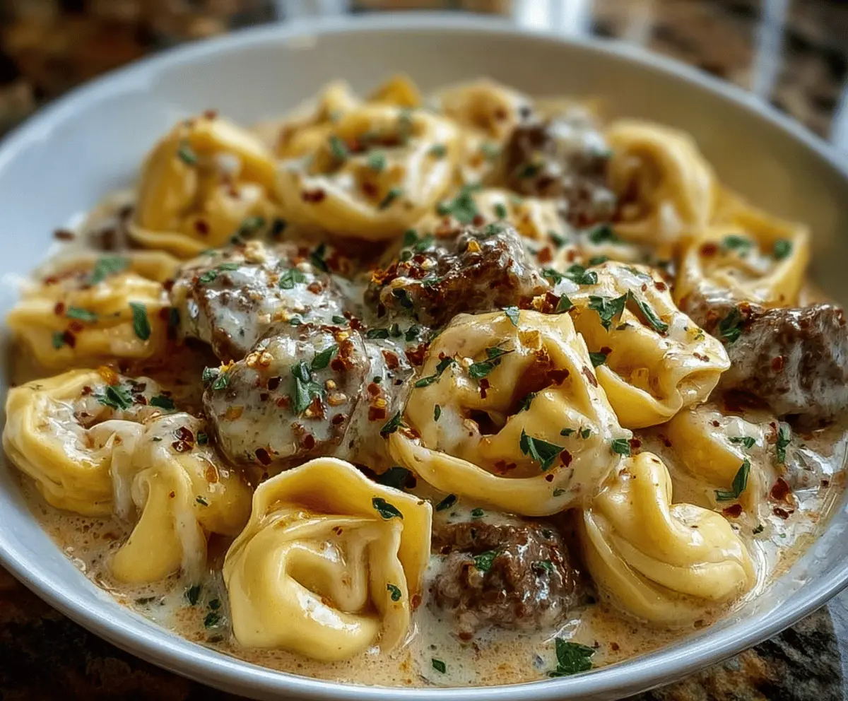 Creamy Cheesesteak Tortellini in Provolone Sauce is a comforting dish that combines tender tortellini pasta filled with cheese, juicy strips of steak, and a rich, creamy provolone cheese sauce. The mixture of melty provolone and hearty steak bites makes every forkful feel like a warm, satisfying hug.