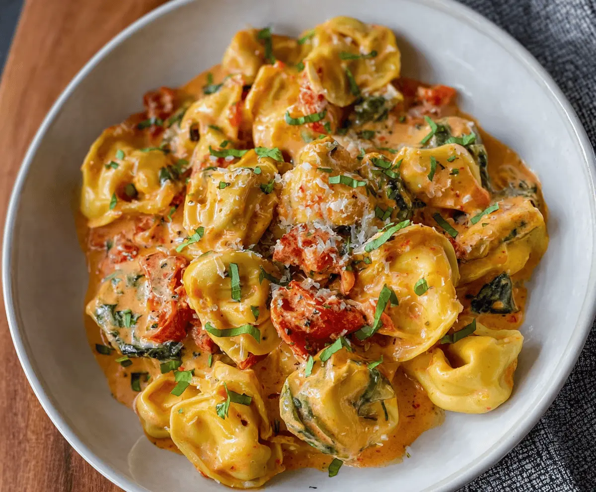 Absolutely! You can make the sauce and cook the tortellini separately, then combine and reheat gently on the stove when ready to serve. Store leftovers in an airtight container in the fridge for up to 3 days.
